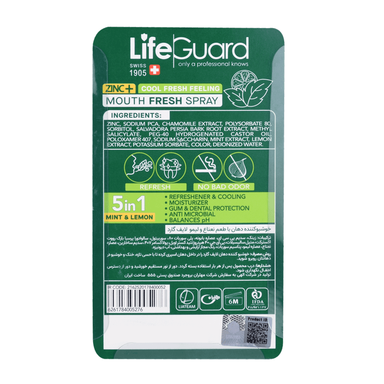 زینک، سالوادورا پرسیا بارک روت اکسترکت (عصاره درخت مسواک)، متیل سالیسیلات، عصاره بابونه، عصاره نعناع، عصاره لیمو
