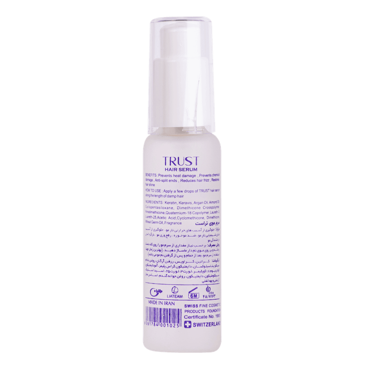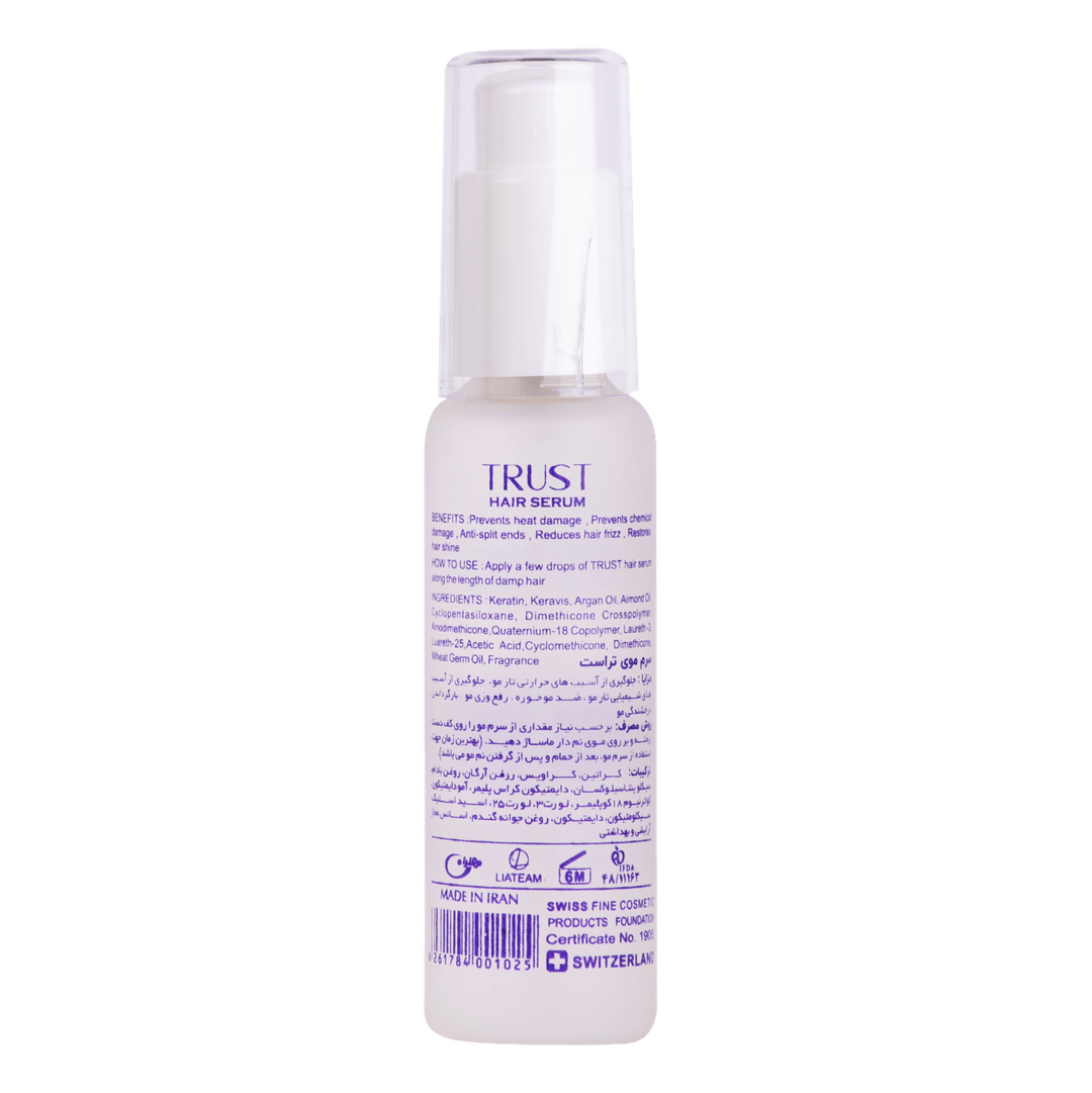 آیا موهای شما در اثر رنگهای مکرر، دکلره، حرارات سشوار و اتو یا آلودگیهای محیطی دچار خشکی، شکنندگی، موخوره و وزی شدهاند؟ بسیاری از محصولات آرایشی تنها ادعای محافظت از مو را دارند، اما راهکاری برای ترمیم عمقی آنها ارائه نمیدهند . سرم کراتین و آرگان تراست (Trust Keratin & Argan Hair Serum) یک محصول پیشرفته و تخصصی است که با بهرهگیری از دو ماده مؤثر و قدرتمند، به بازسازی ساختار مو، آبرسانی عمیق و ایجاد درخششی خیرهکننده کمک میکند.