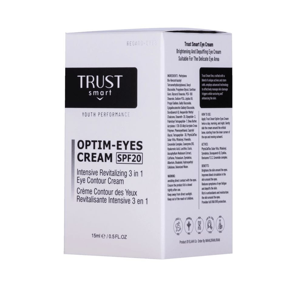 بیخوابی، استرس، ژنتیک یا افزایش سن – هر دلیلی داشته باشه، تیرگی و پف دور چشم میتونه سالها به چهره ات اضافه کنه. کرم برطرف کننده تیرگی و پف دور چشم تراست اسمارت با یک فرمولاسیون پیشرفته و ترکیبات هدفمند، طراحی شده تا این ناحیه حساس رو به طرز چشمگیری جوانتر و شفافتر کنه.